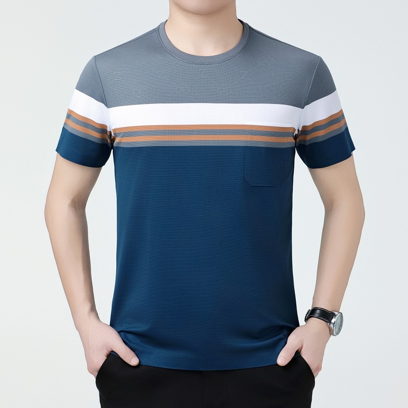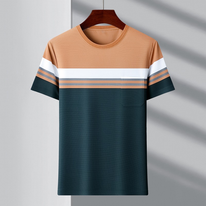 Men's Ice Silk Short Sleeve T-shirt Casual Round Neck Contrast Color Simple