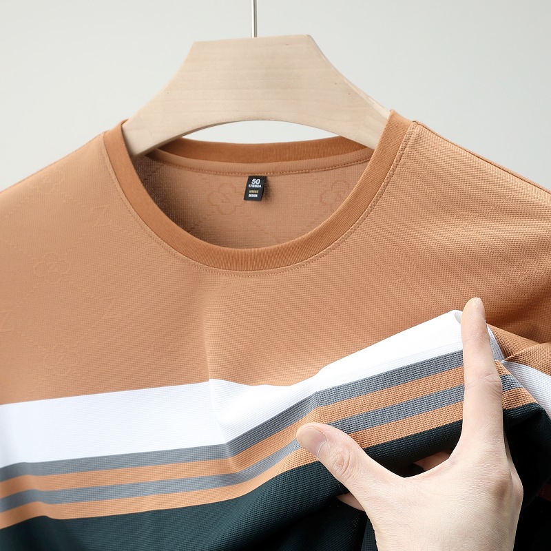 New Summer Thin High Stretch Men's Short Sleeve Round Neck T-Shirt