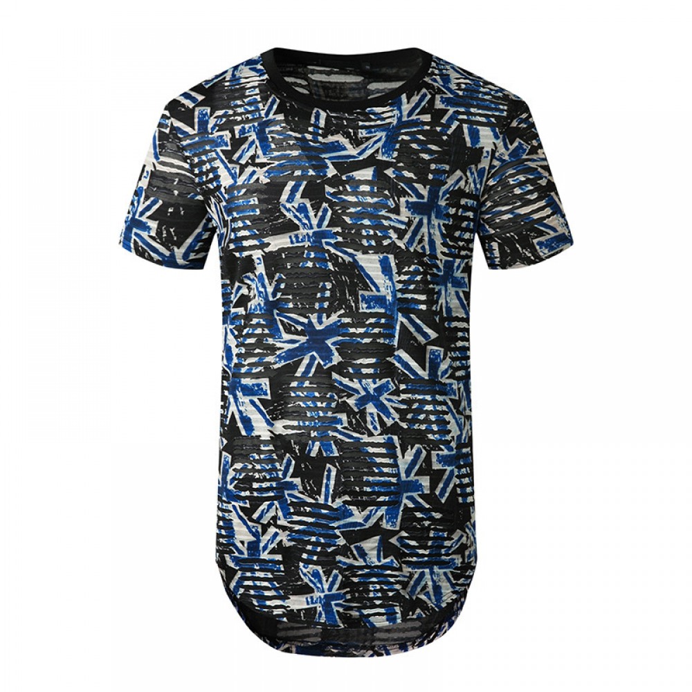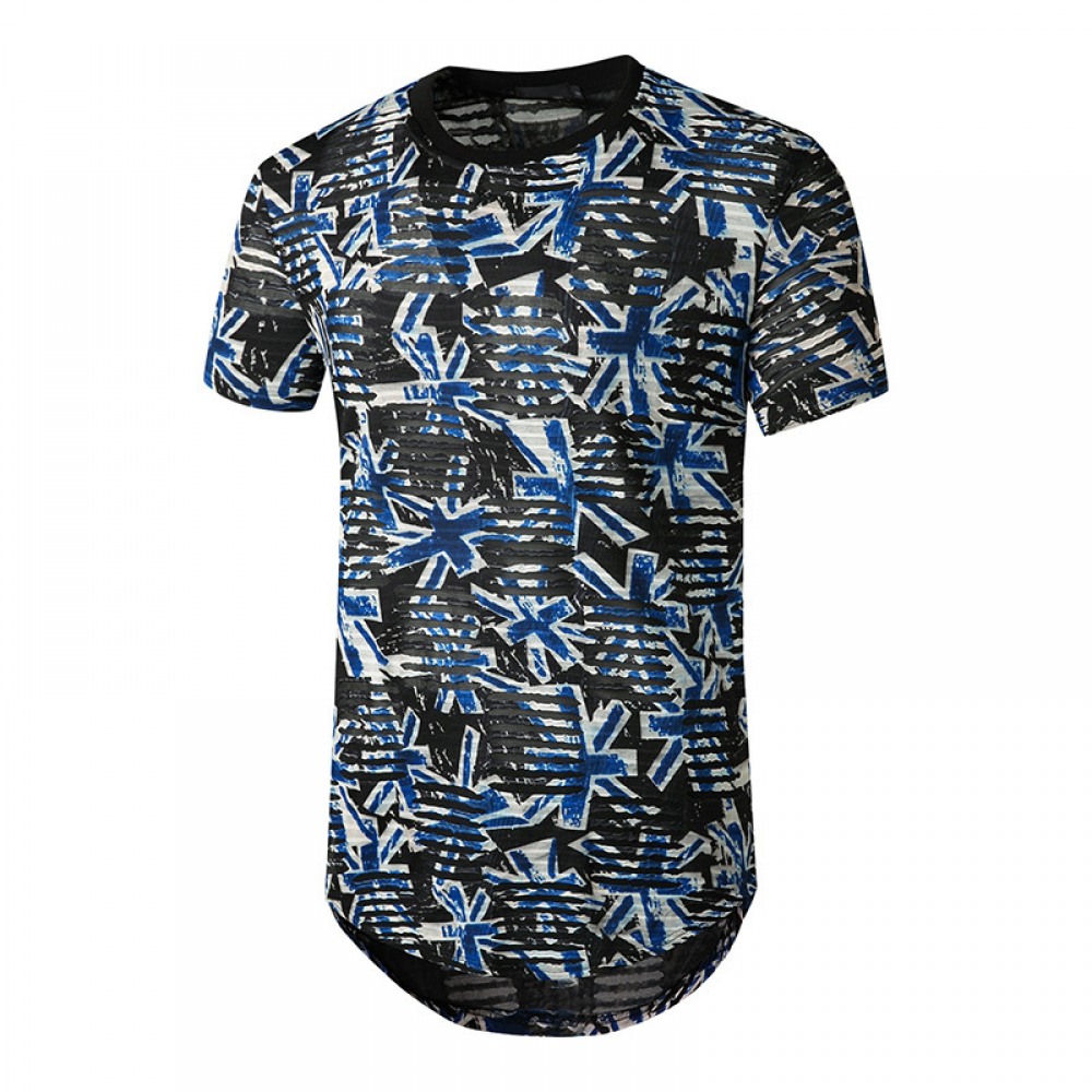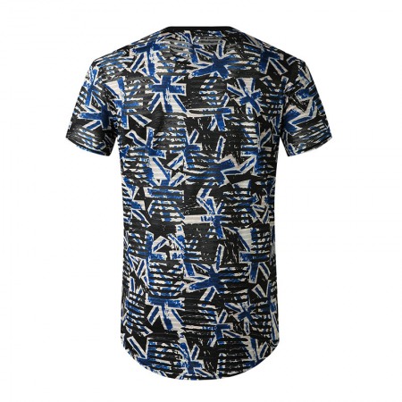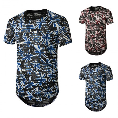 New Summer Men's Color Matching Print Short-Sleeved T-Shirt