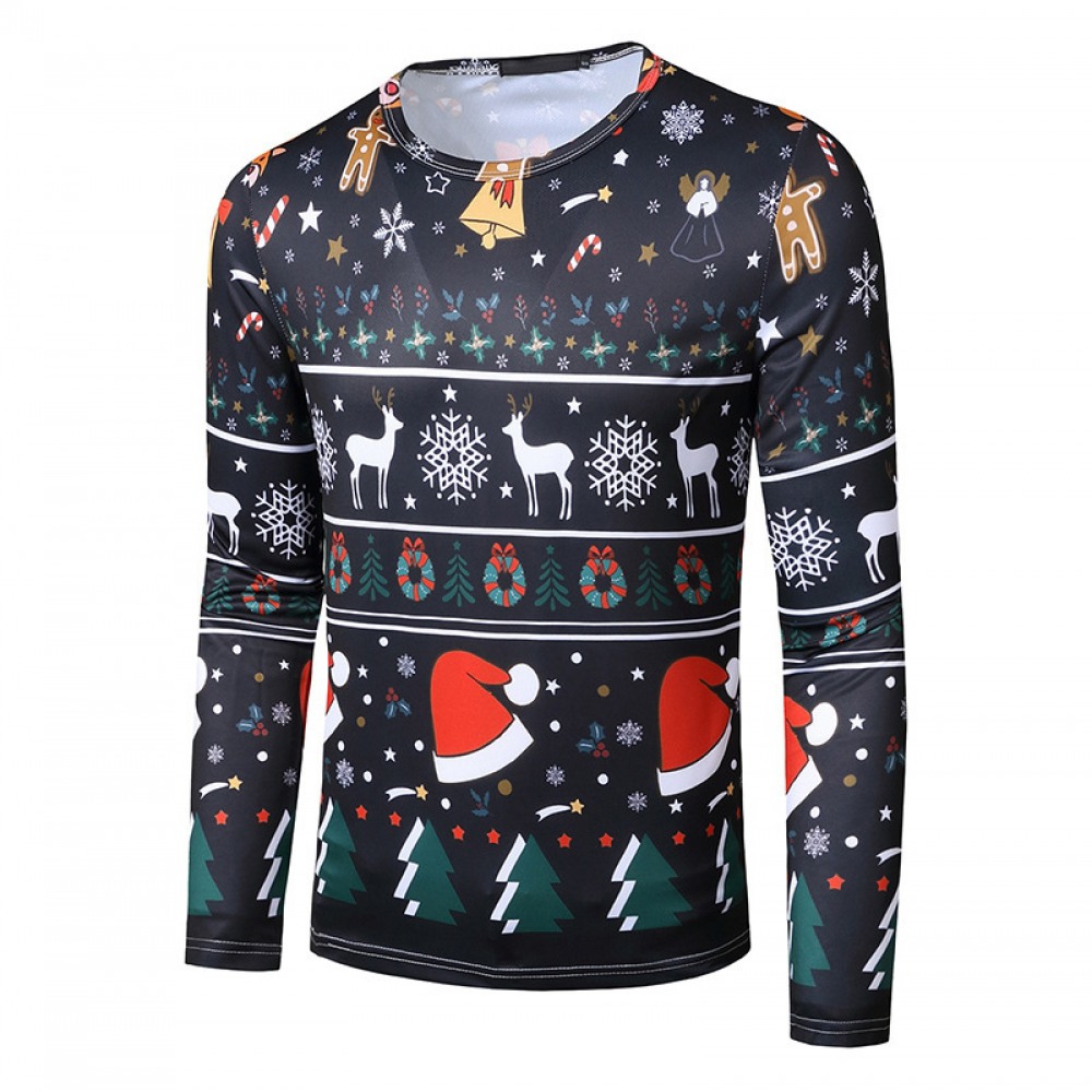 New 3D Personality Printing Fashion Men's Christmas Elk Pattern Long Sleeve T-Shirt