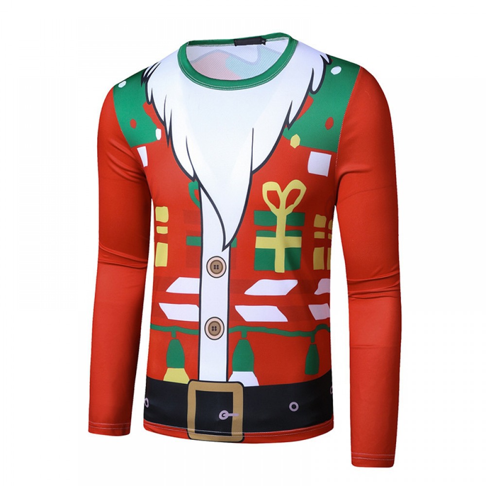New 3D Personality Printing Fashion Men's Christmas Long Sleeve T-Shirt