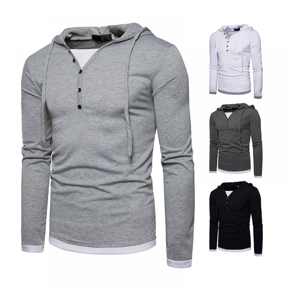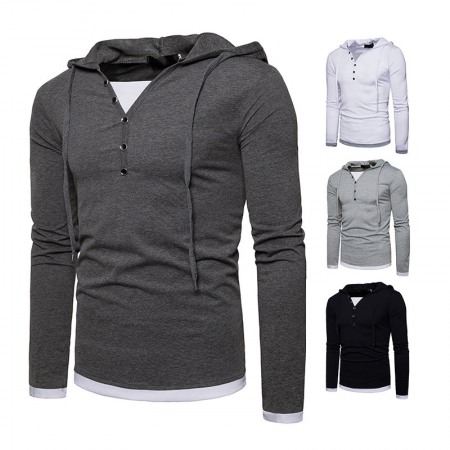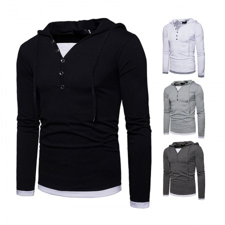 New Fashion Men's Hooded Long-Sleeved Stitching T-Shirt Sports Pullover Hoodie