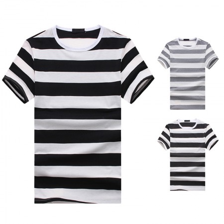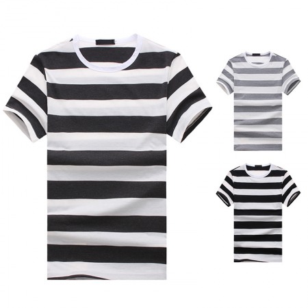 New Style Flat Men's European Size Thick Striped Short-Sleeved T-Shirt